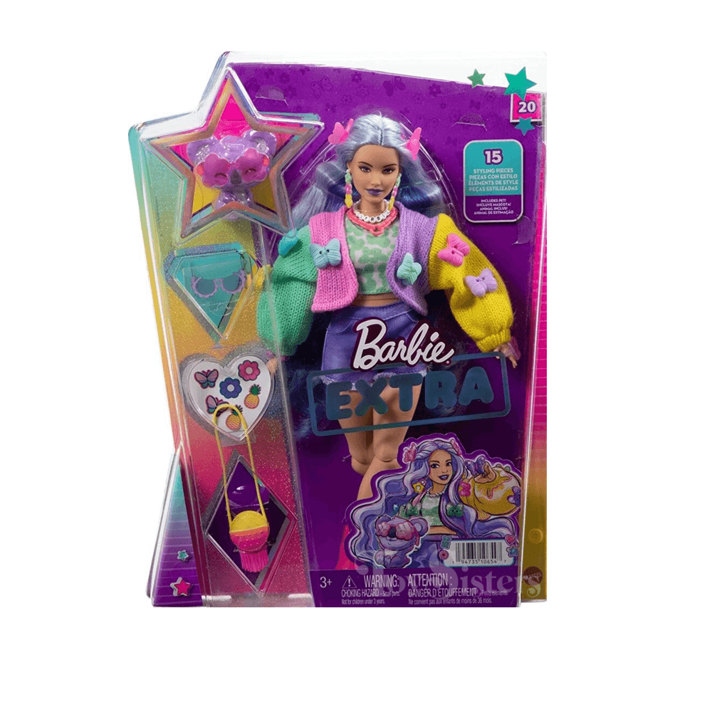Cuando se trata de moda, las muñecas Barbie Extra tienen una actitud de “más es más”, cuentan con 15 piezas que incluyen prendas de vestir y accesorios a la moda, además de una mascota y accesorios.