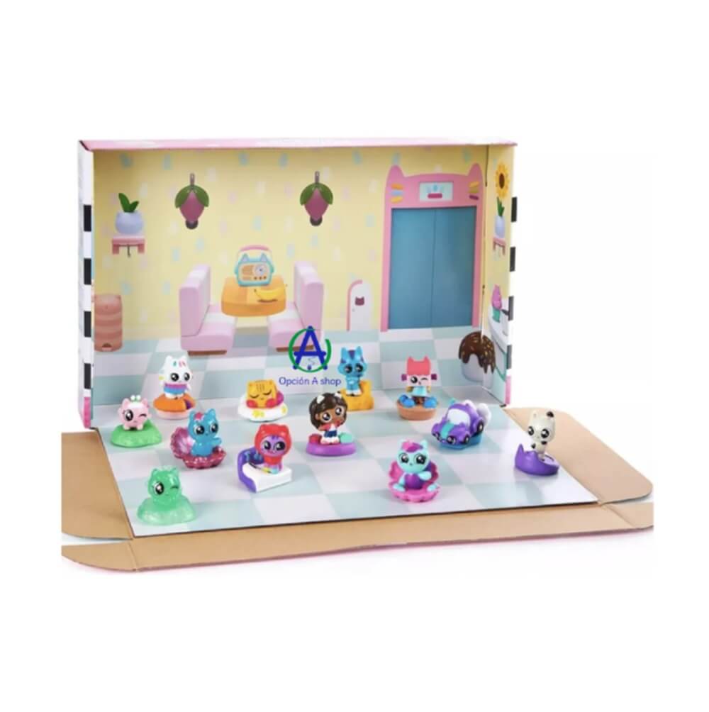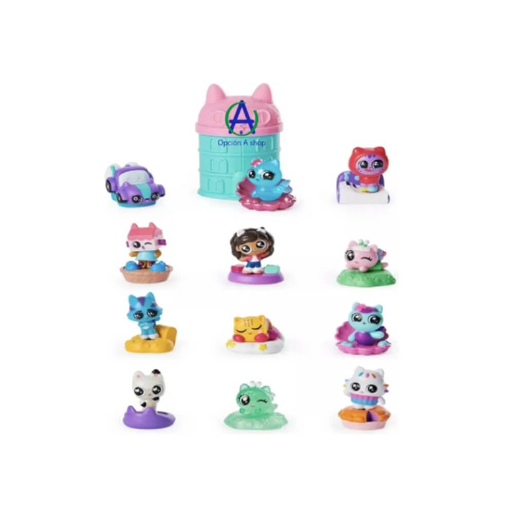 12 mini figuras de casa de muñecas de Gabby. Incluye Kitty Fairy con un acabado especial y un MerCat exclusivo que no encontrarás en ningún otro lugar.