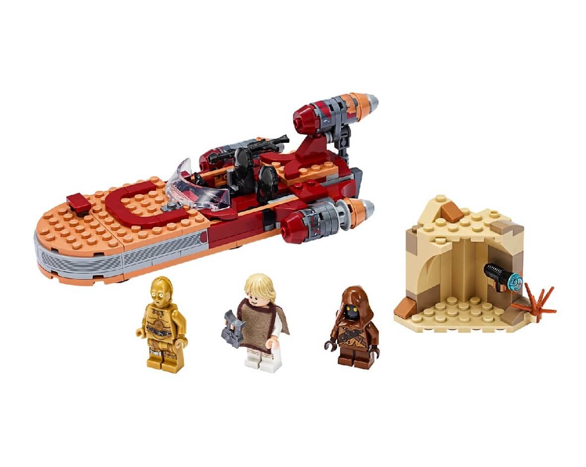 Con más detalles que nunca para estimular el juego creativo, cuenta con espacio para las minifiguras de Luke y C-3PO, compartimento abatible con macrobinoculares en su interior y conector para colocar el fusil bláster de Luke.