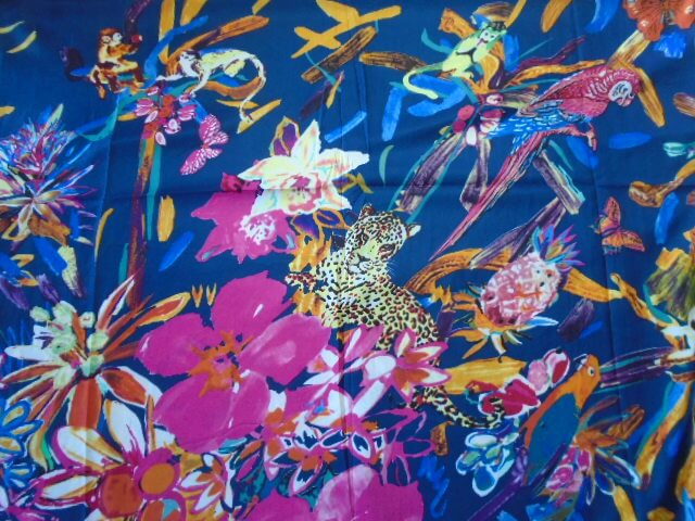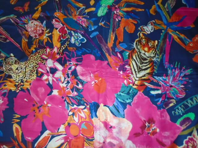 Estampado de flores con varios animales, guacamaya, Tigre, Jabuar, Monos, Mariposas,