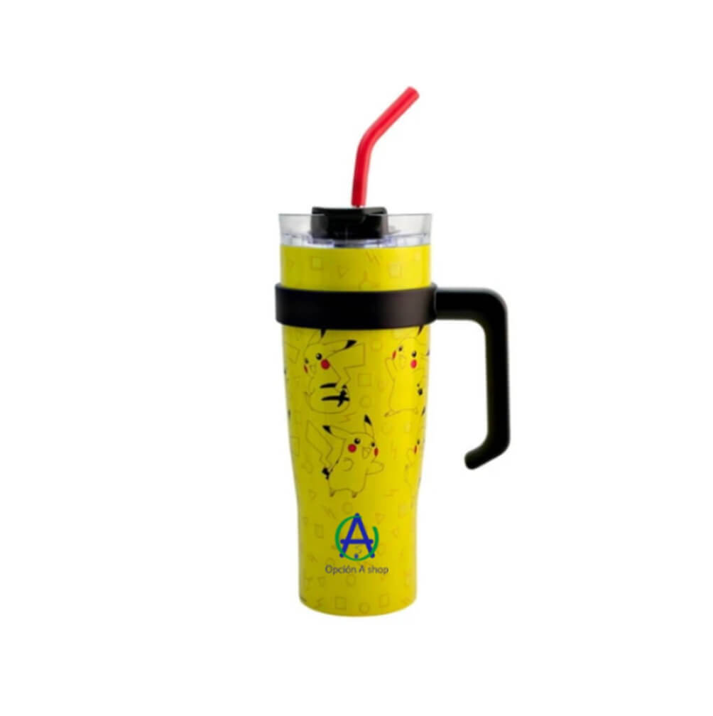 “¡Dale un toque de lo extraño y lo inusual a tu día! Este termo de acero inoxidable inspirado en Pikachu es perfecto para los fans.. Mantén tus bebidas a la temperatura ideal mientras llevas contigo el espíritu de esta icónica película. ¡Hazlo tuyo antes de que desaparezca!”