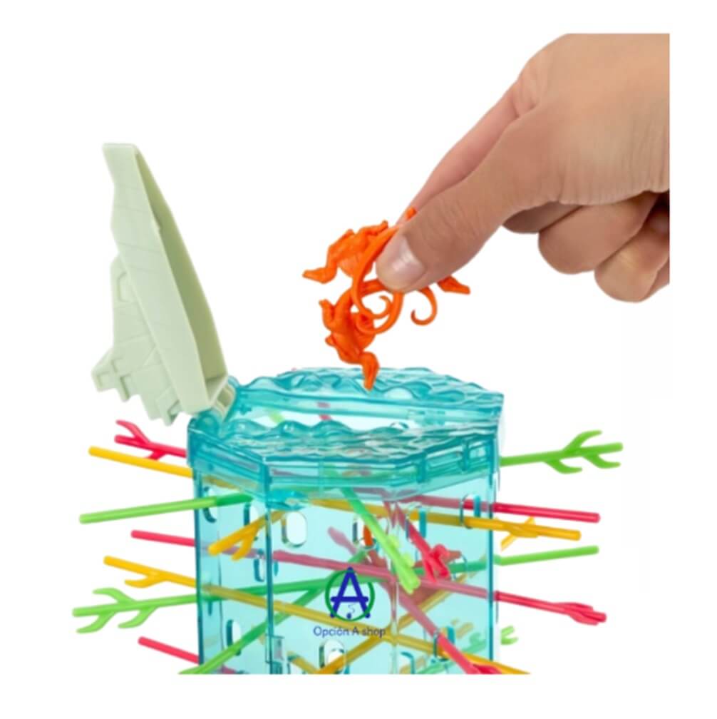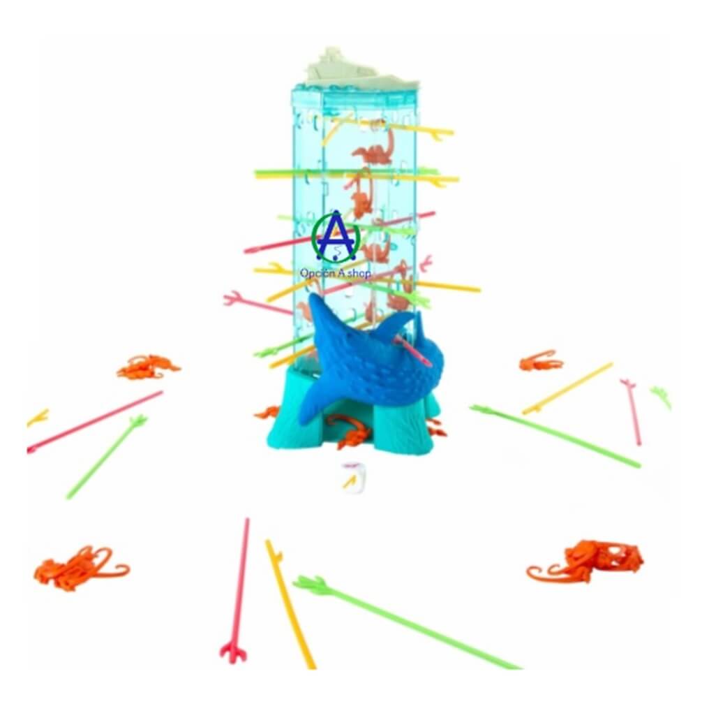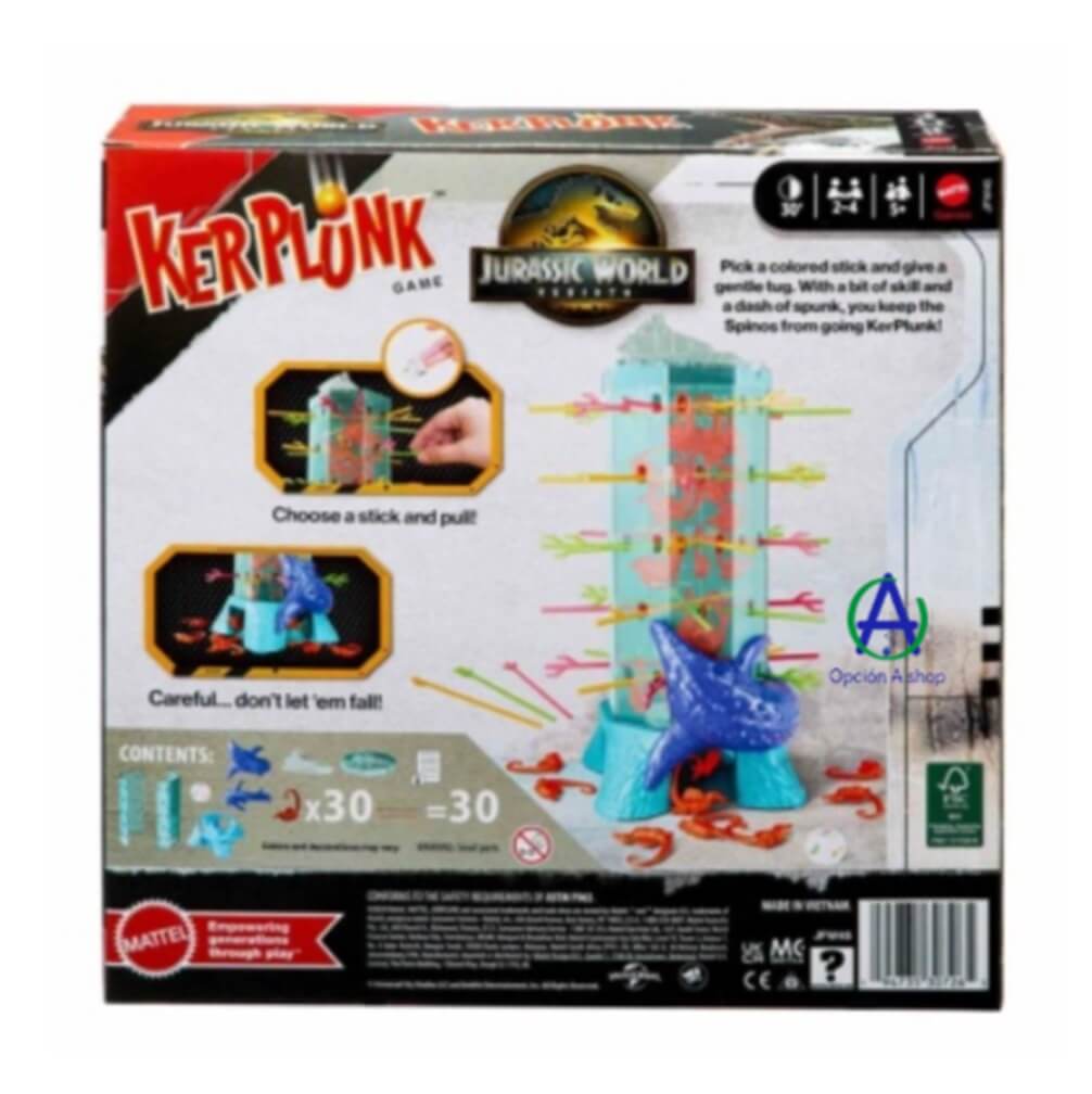 Para hacer que la diversión loca comience, crea una red de palillos que atraviesen la torren y coloca las piezas de juego de Spinosaurus en su interior. Luego, lanza el dado y tomen turnos para quitar una varilla del color que indica el dado a la vez. Debes procurar de no botar a tus personajes favoritos.