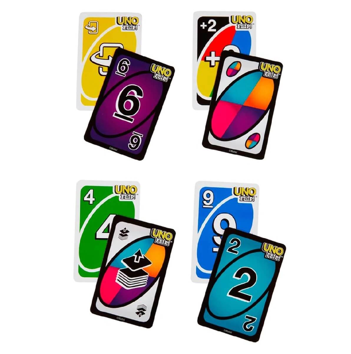 Es el mismo juego que ya conoces con los emocionantes giros nuevos, como un mazo de dos caras y una carta FLIP especial, que le dan a este clásico juego un giro competitivo.